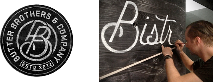 Vintage boilerplate style design for a bakery in Budapest, aiming for a '20s look and feel. The design is a mix of type and hand-lettering, and was painted onto one of the bakery walls by local sign painters.